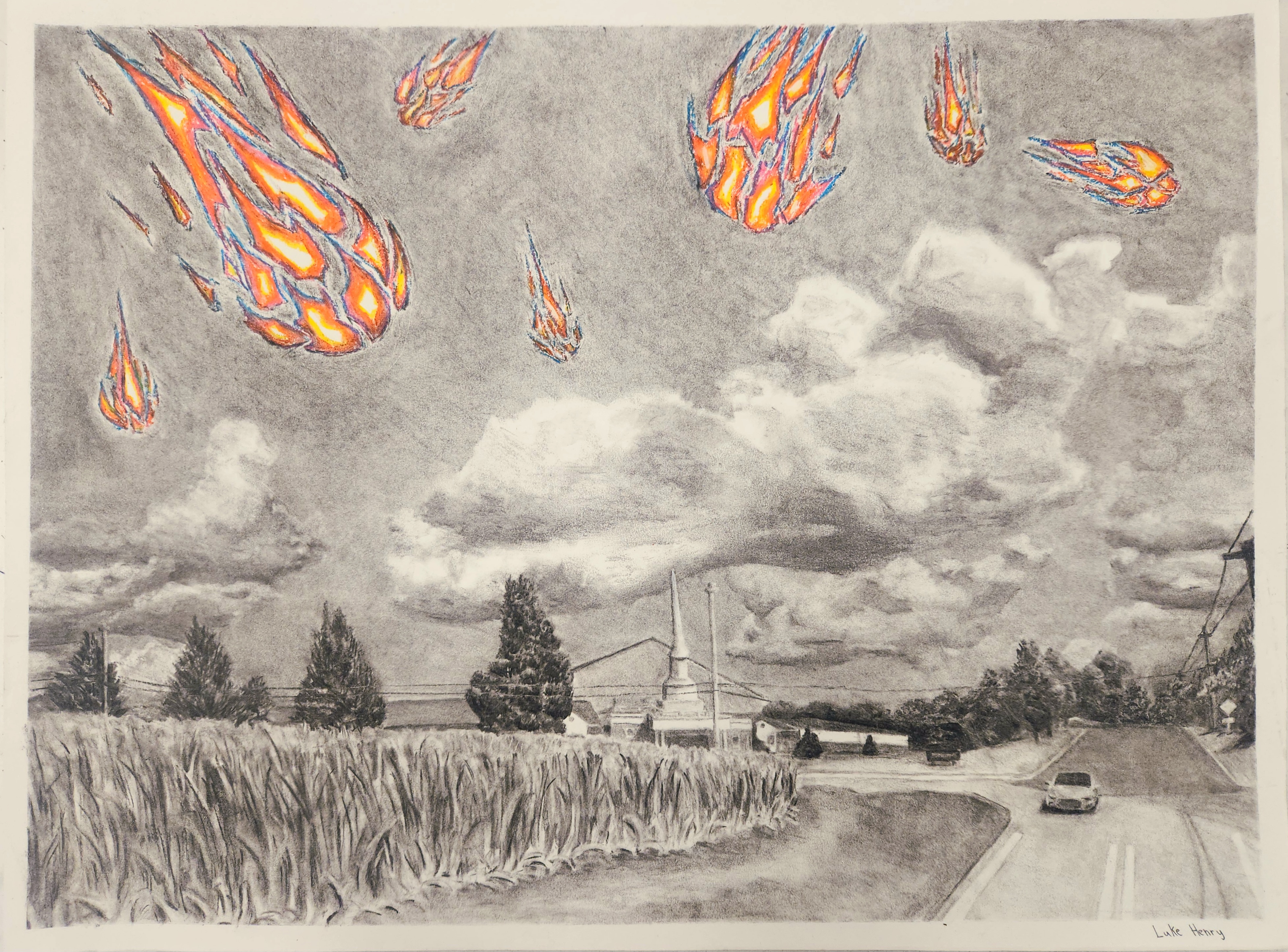 Charcoal and oil pastel on paper